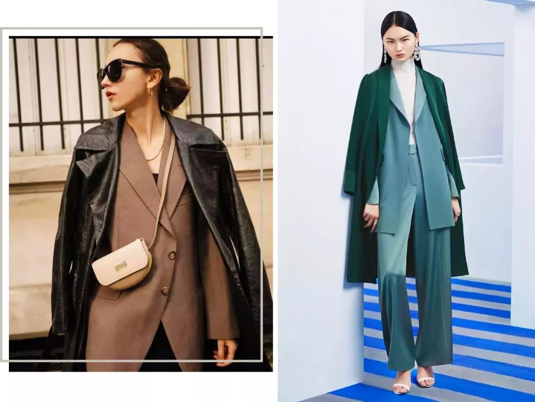 上班族也有很多不同款式的西服,搭配直筒版型的外套就不會破壞整體的氣質,在辦公室脫掉外套就是一個精英形象啦▼