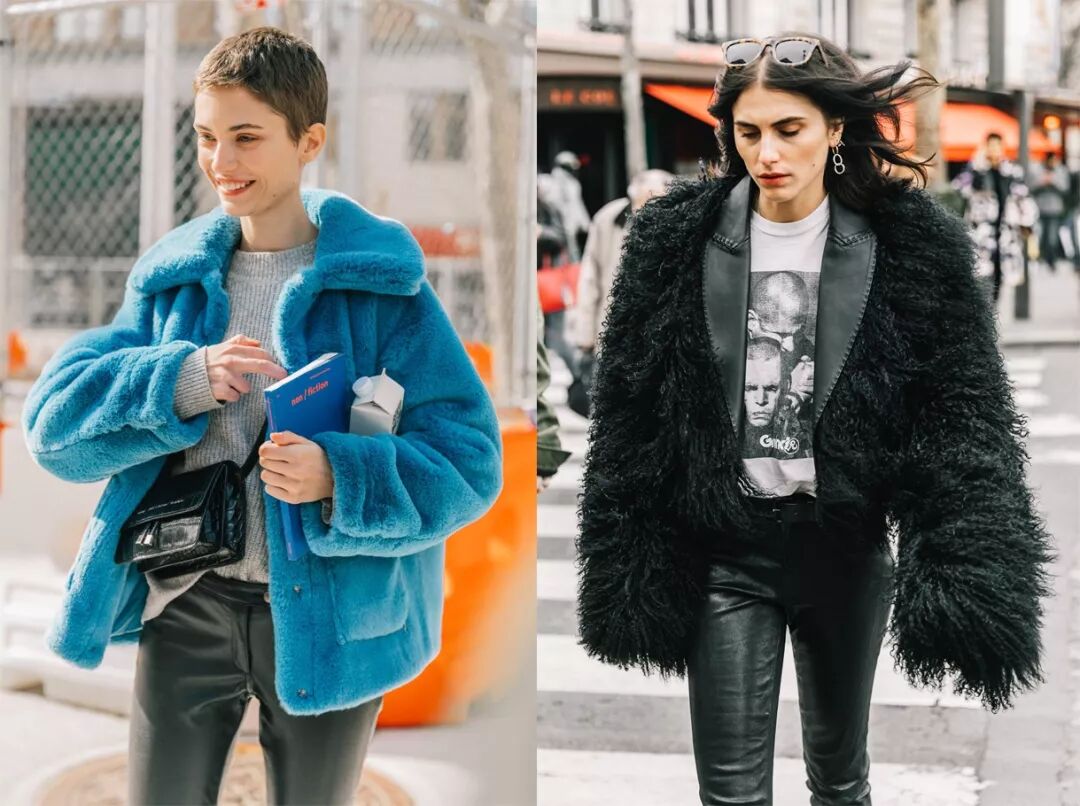 這種毛絨絨的外套為了避免臃腫,盡量做到兩層疊穿就好,內搭單薄的毛衣或T恤就可以又暖又chic▼