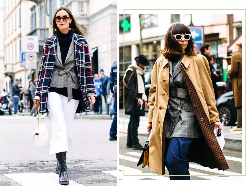 而外套+外套更有種酷酷的味道,里面的外套選擇格紋or亮色又可以「喚醒」冬季穿搭▼