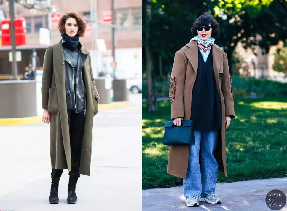 短外套+長外套的疊穿look,可以看到腰線也能打造層次感,不管是高個子還是小個子都可以駕馭▼