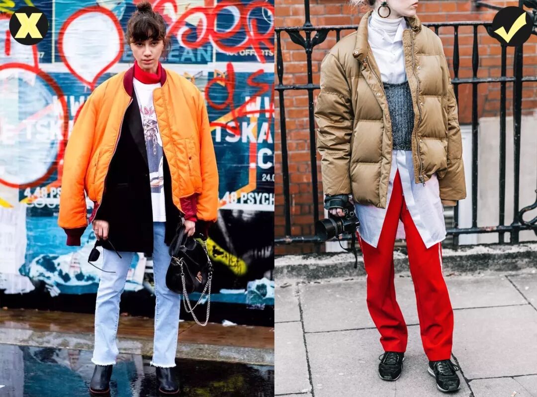 想要打造外短內長的造型,內搭款盡量避免厚重的單品,否則會顯得累贅以及壓低整個人的身高▼