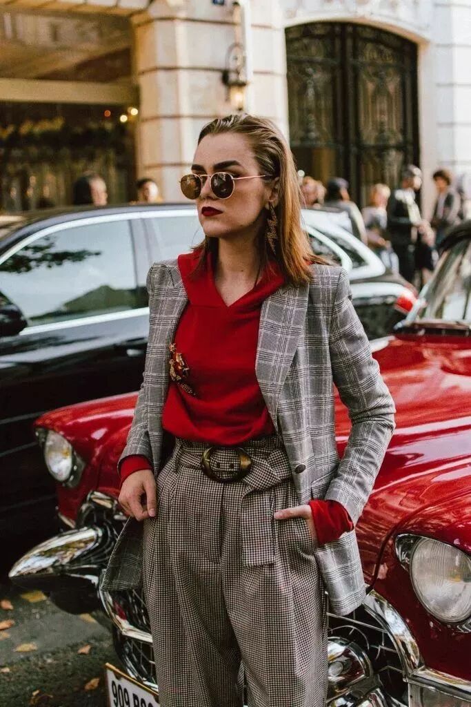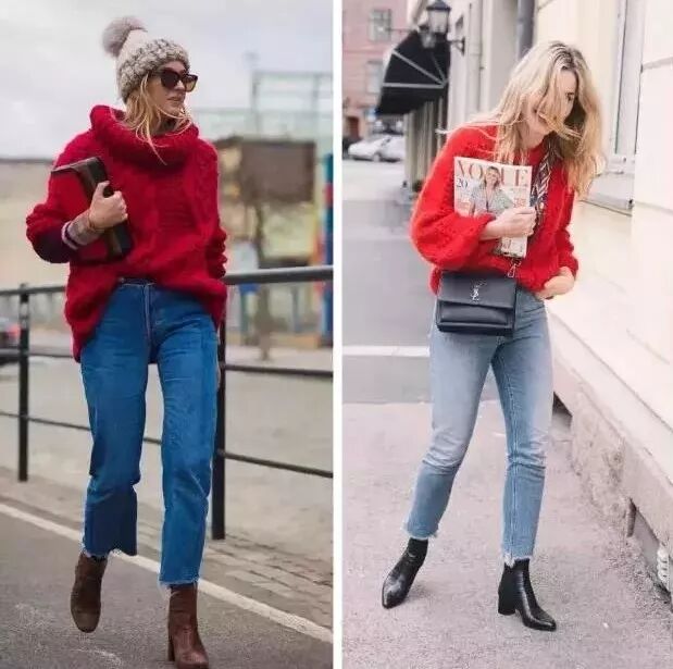 不喜歡高領打底衫的話,大領口的款式也讓人眼前一亮,來條圍巾就不怕冷了。對於學生黨,那紅色衛衣一定是最好穿的,搭配格子外套+格紋褲,復古又摩登。