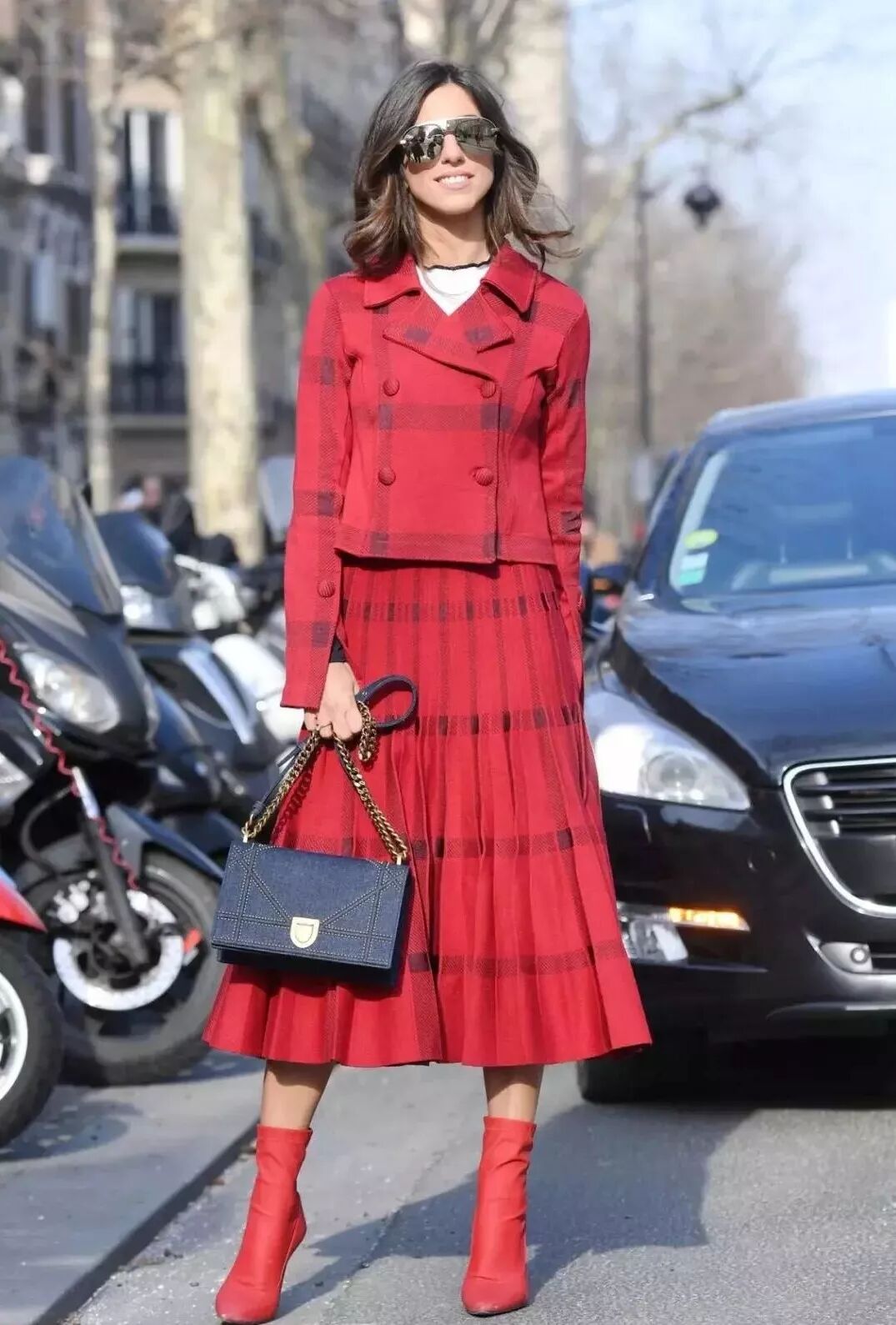 紅色的連衣裙、紅色的包包、紅色的高跟鞋、紅色的帽子、烈焰紅唇。。。一身紅色,其實也不是不可嘗試,只是太考驗個人氣質。