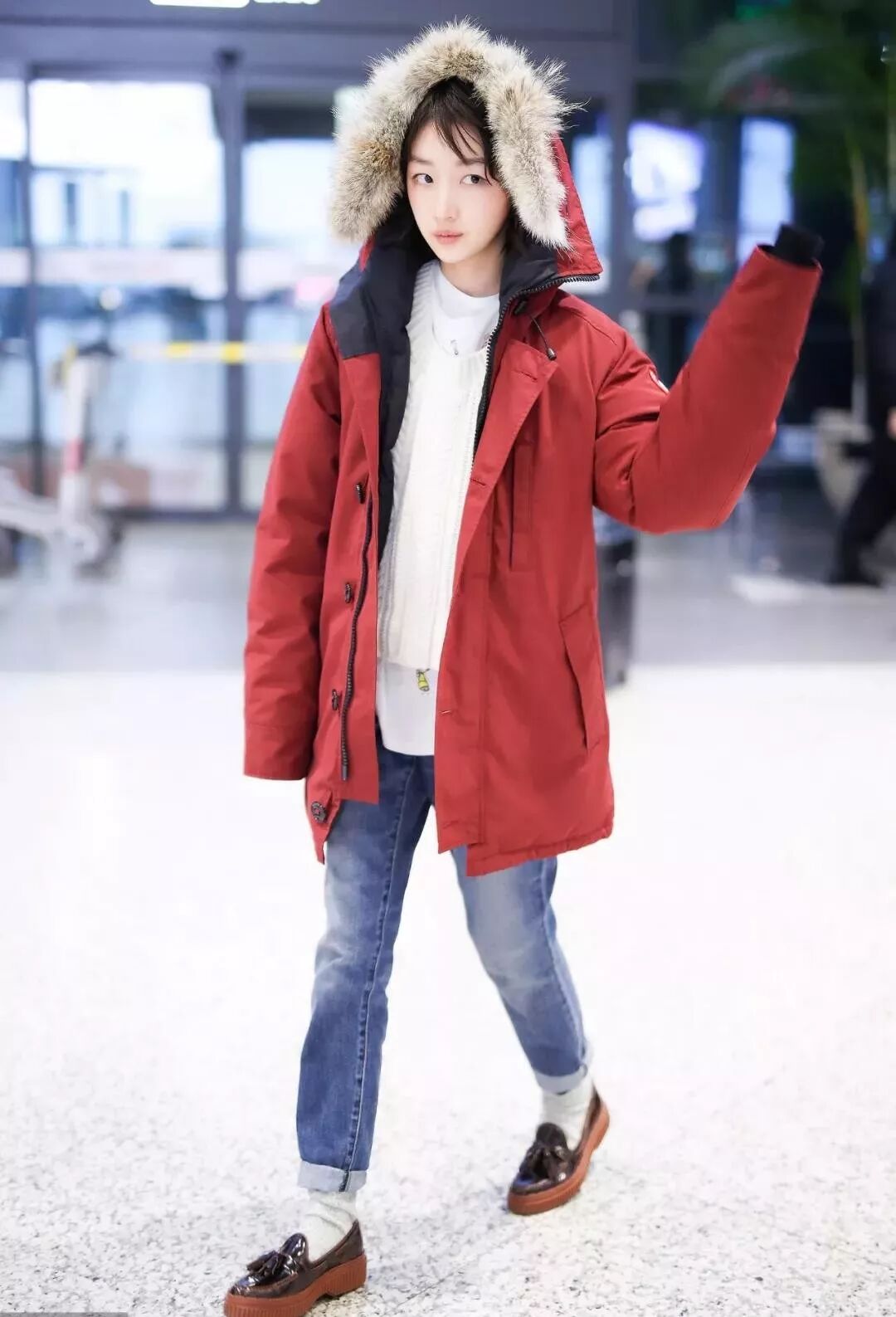 最喜歡的還是打底衫的紅色,有氣質,一看就比較有錢,大衣配紅色也是個不錯的選擇,更加職場氣質化一些。