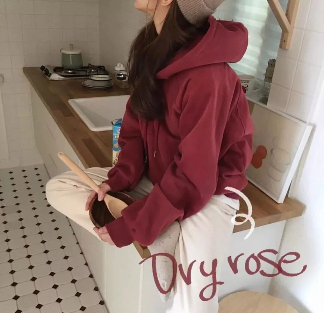 棗紅色衛衣+卡其色褲子的休閒感讓你減齡5歲!