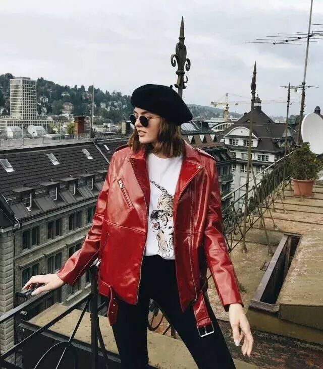 有姑娘會問如果氣質就是完全穿紅不好看呢?那建議紅色的帽子是很好的選擇,貝雷帽最能凹造型。