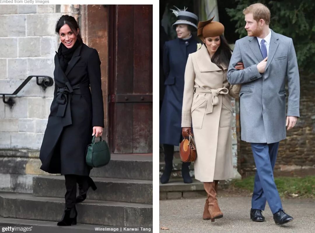 灰色大衣通常給人老幹部既視感,但梅根用裸色系增強少女感,一套下來過渡自然且舒服▼