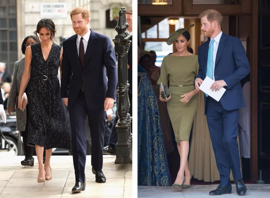 相比凱特style,梅根的露膚面積會多一點,衣服更貼身,而尖頭高跟鞋的出場率更達到了99%▼