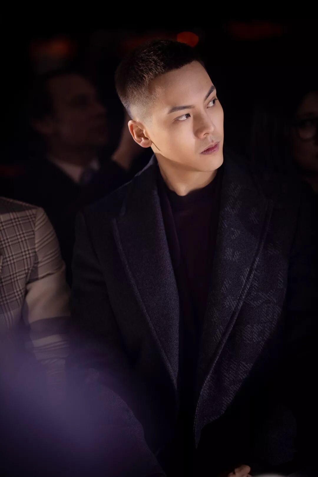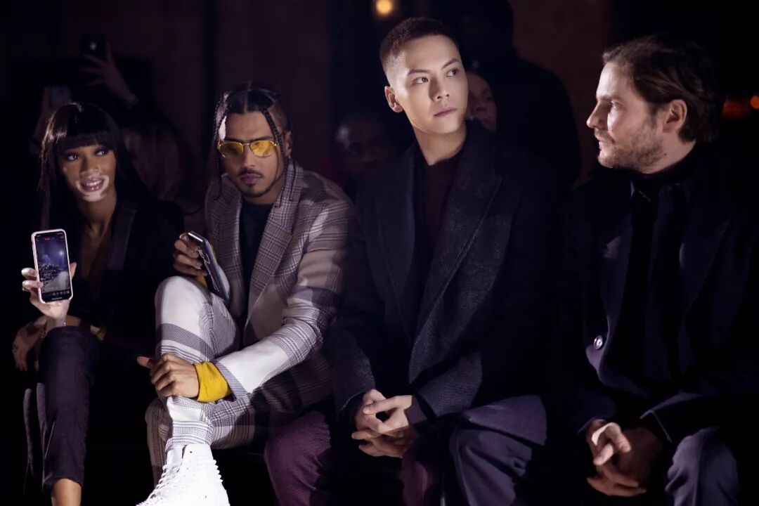全新 Ermenegildo Zegna XXX 2019 冬季系列加身的陳偉霆帥氣非凡,落座頭排看秀,絳紅色西服套裝外搭灰色大衣,並特別搭配其個性化定制的MyCesare球鞋。