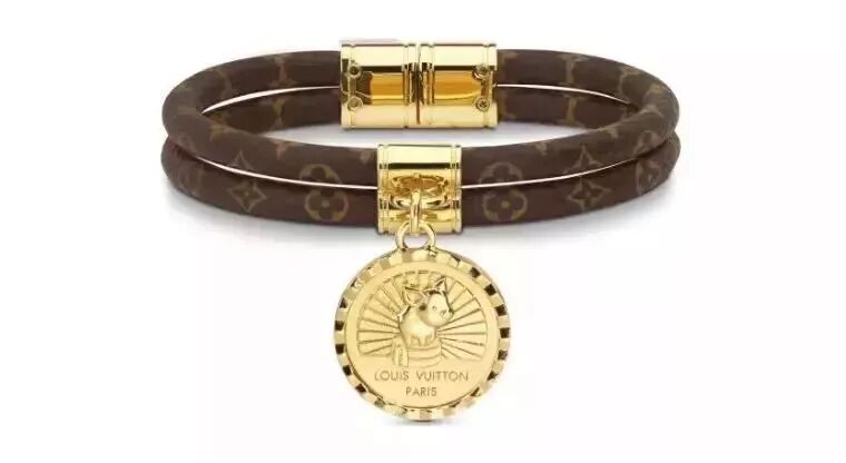 豬年手鐲,採用經典老花皮質,五金上有一塊像在泡腳的「豬牌」