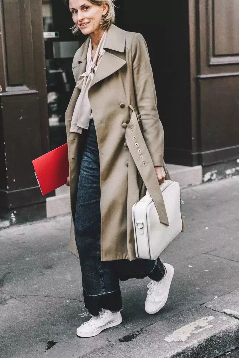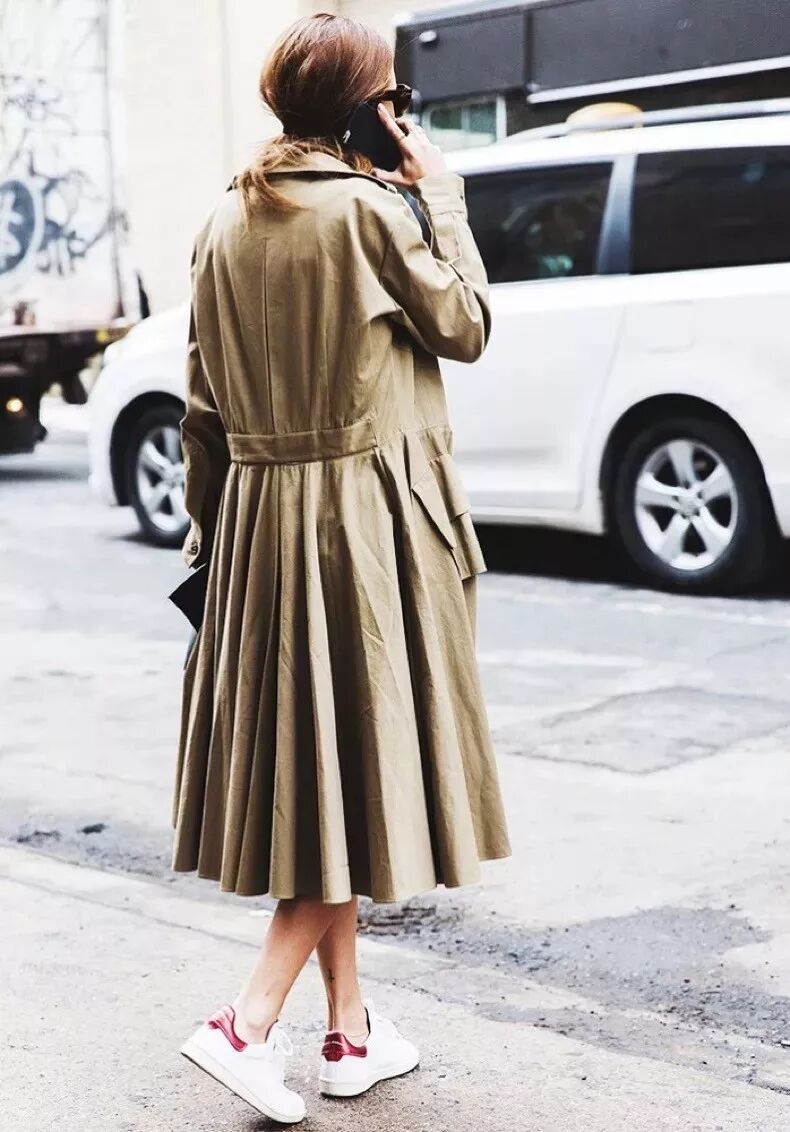 用運動鞋來混搭風衣是最適合日常也最率性時髦的經典組合,隨性灑脫又潮范十足,還能讓你的風衣look看起來更加輕盈有活力。