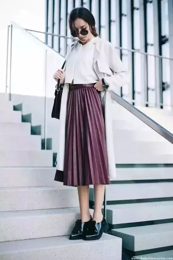 風衣+牛津鞋搭配裙裝,氣質溫婉而文藝,美得恰到好處。