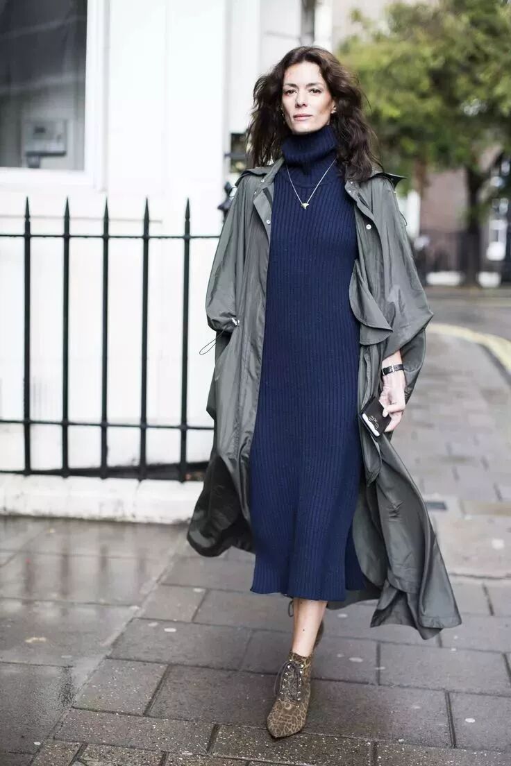 等天氣再冷一些,你也可以用針織長裙做風衣內搭混搭平底靴,將優雅氣質展現得淋漓盡致。