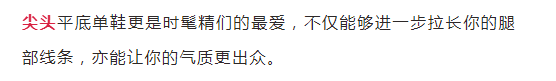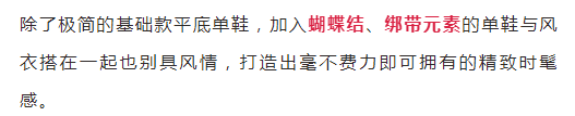 裸色平底鞋單鞋也是顯高顯腿長利器,它在顏色上與我們的膚色接近,能與小腿融為一體, 從而讓雙腿線條看起來更修長。