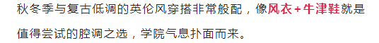 牛津鞋文藝氣息濃厚,與帥氣掛的風衣搭在一起,也依舊不減斯文。