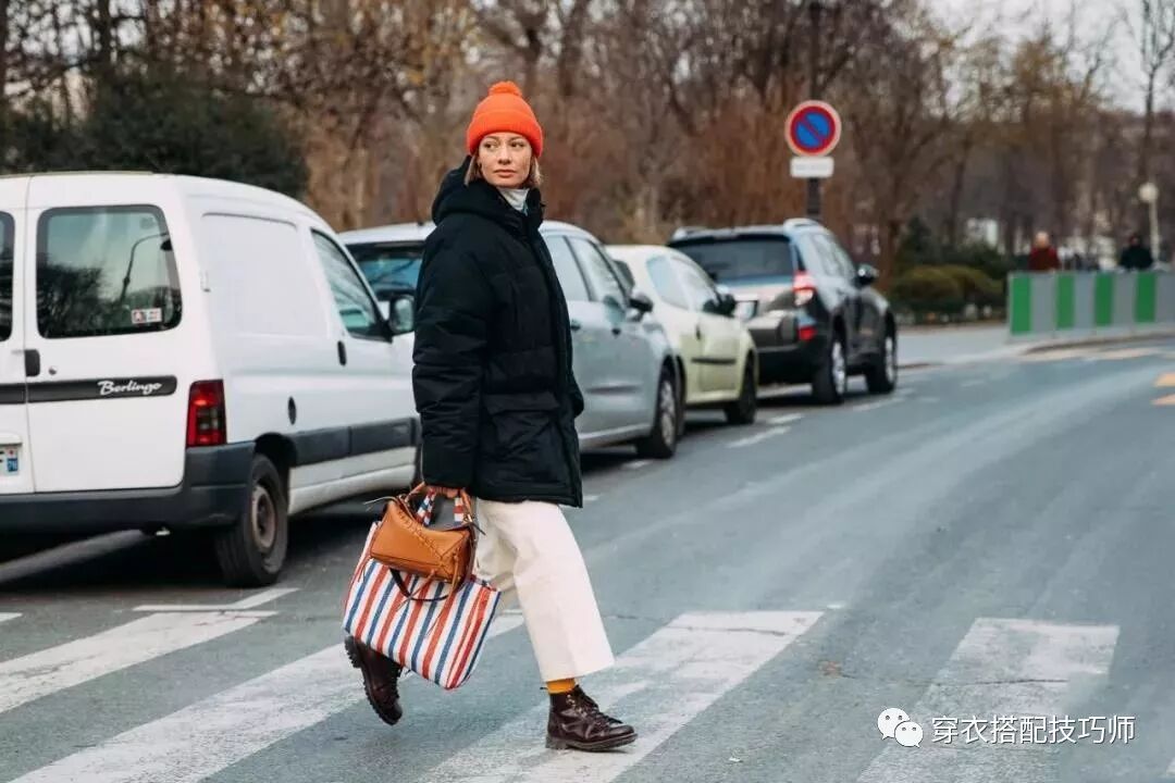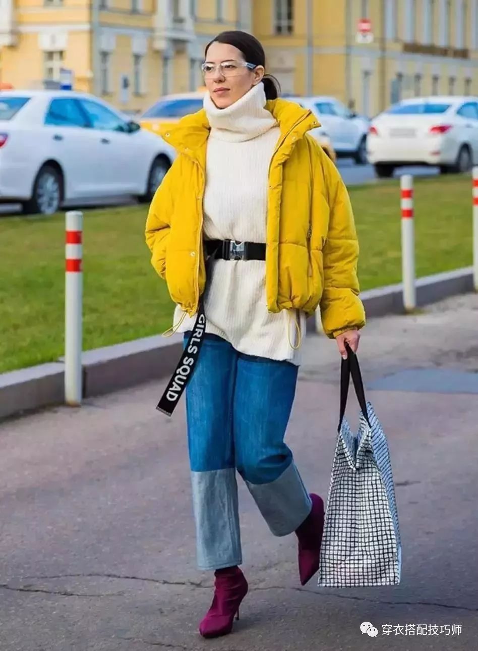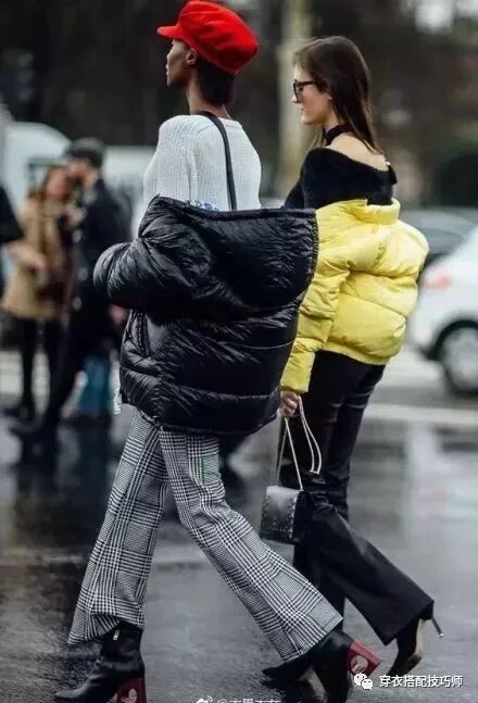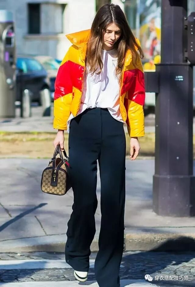亮色系羽絨服吸引眼球卻不好駕馭?搭配一條黑色闊腿褲就搞定!
