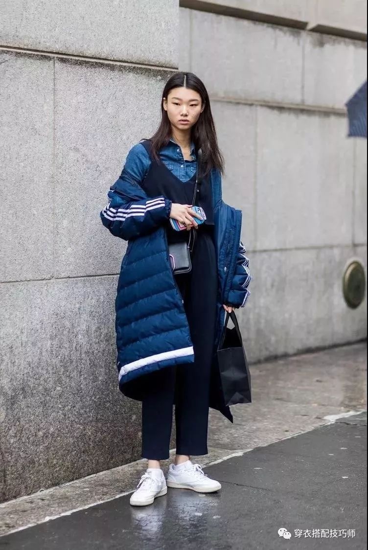 用運動鞋來搭配羽絨服+闊腿褲可以說是最舒適也是最時尚有型的挑選了,最能將這種休閒而時尚的街頭風格呈現得一覽無餘。