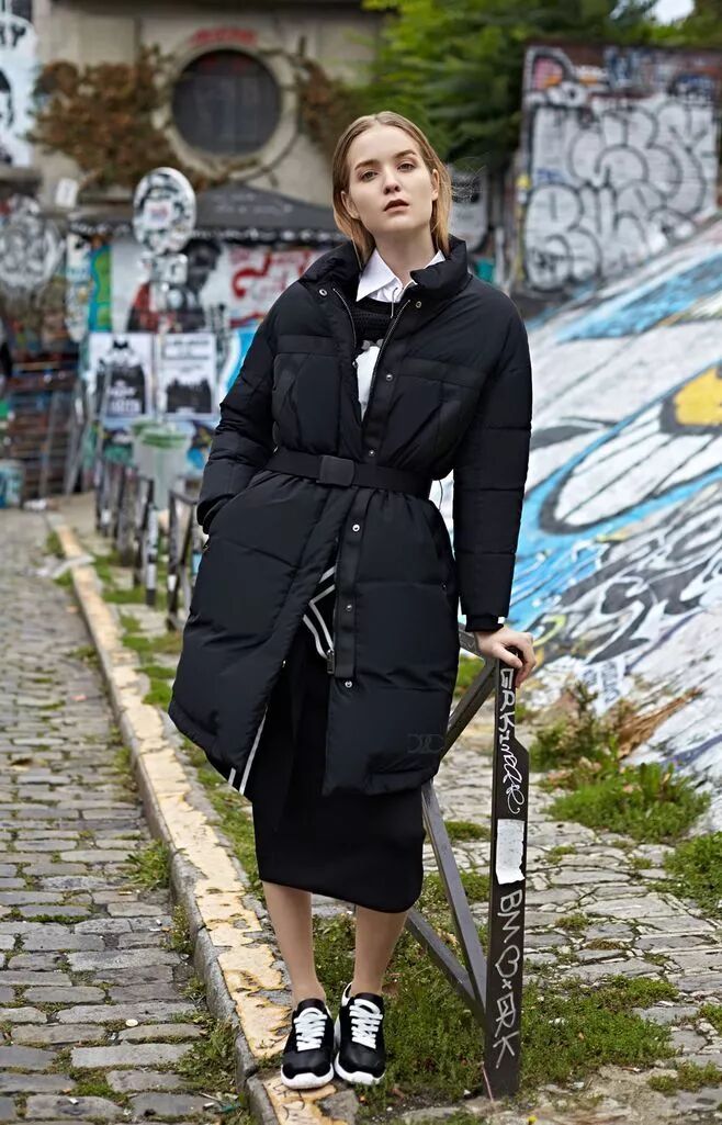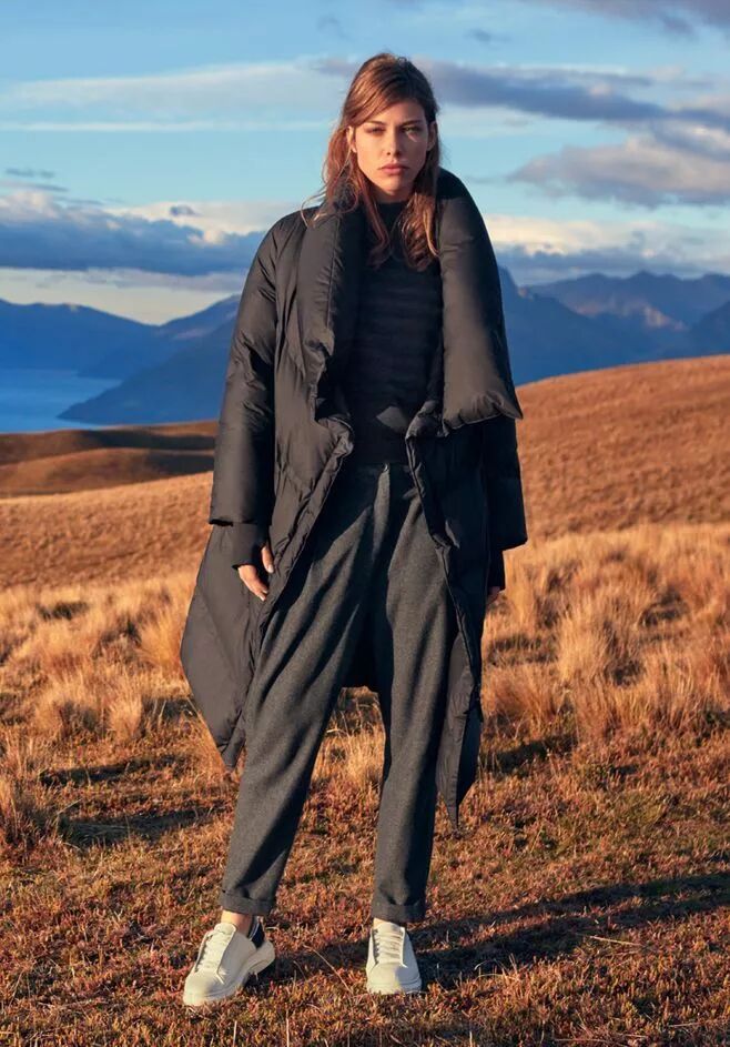 好處在於輕薄暖和,缺點就是里面不能疊加太多層,會顯得非常突兀臃腫。女生可以選擇收腰系帶款,突出線條。
