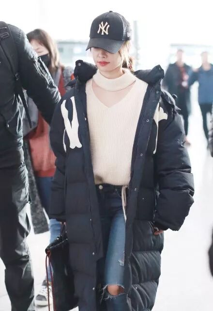 宋茜也穿過超oversize的羽絨服在機場,看起來就暖和。