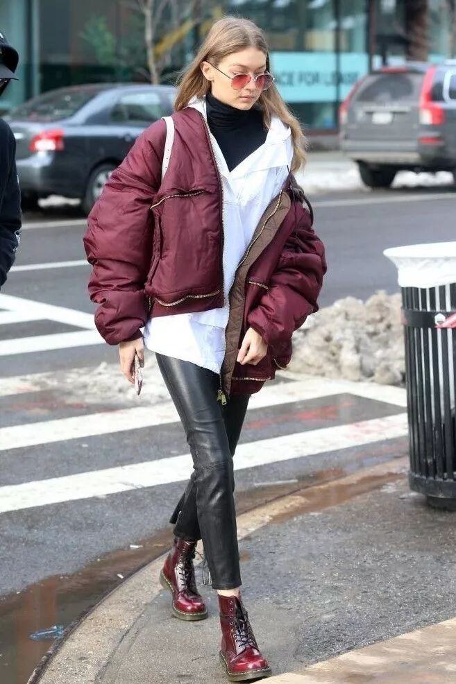 貼身款的羽絨服可以搭配緊身褲,整個人保暖又纖細,里面的內搭不要太多,會顯得過於臃腫。