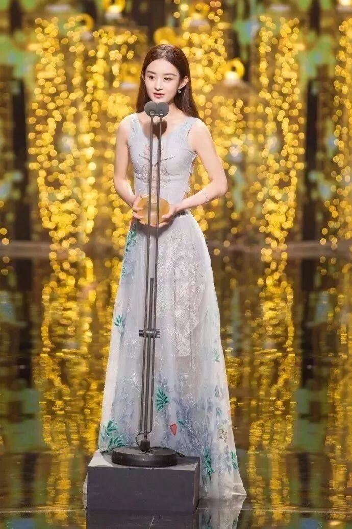 同為娛樂圈稀有的小圓臉明星趙麗穎的氣質與品味卻比何泓姍好了不止一點點。款式大方的緊身禮服在下擺處繡上圖案,不僅撐出趙麗穎完美的身材,更有種迷人的氣質。
