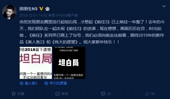 《前任4》情人節上映?導演田羽生和制片方辟謠