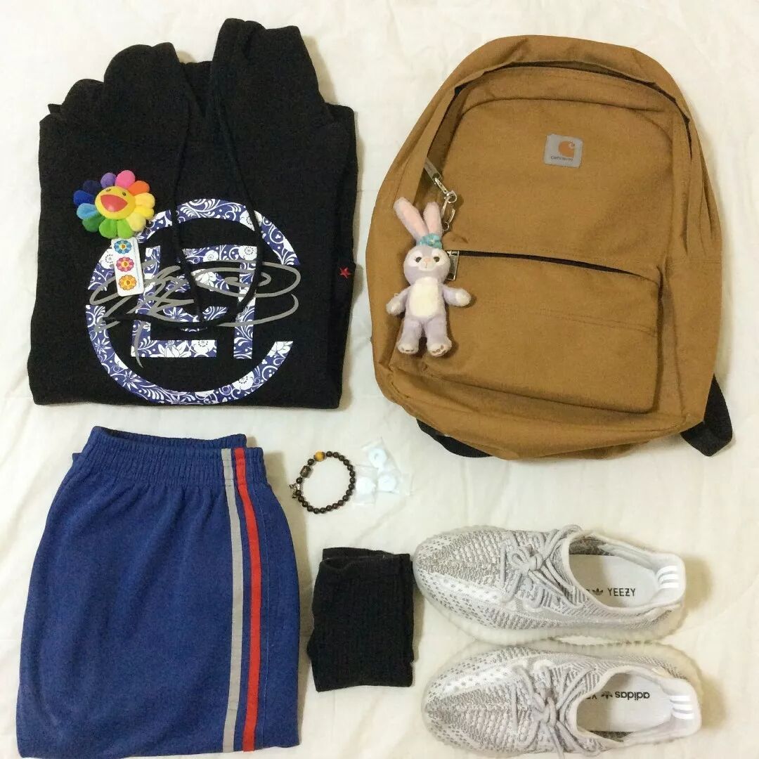 衣服:SSUR × CLOT 300+褲子:廈門市統校褲 60鞋子:yeezy boost 350天使 2000+包:Carharrt 300+配飾: 某國潮襪 Disney星黛露 村上隆 南普陀寺佛珠 好吃的香草薄荷糖百搭校褲你值得擁有要會考了 穿的舒服點