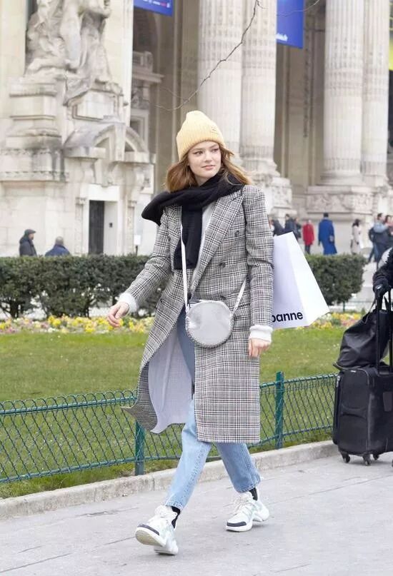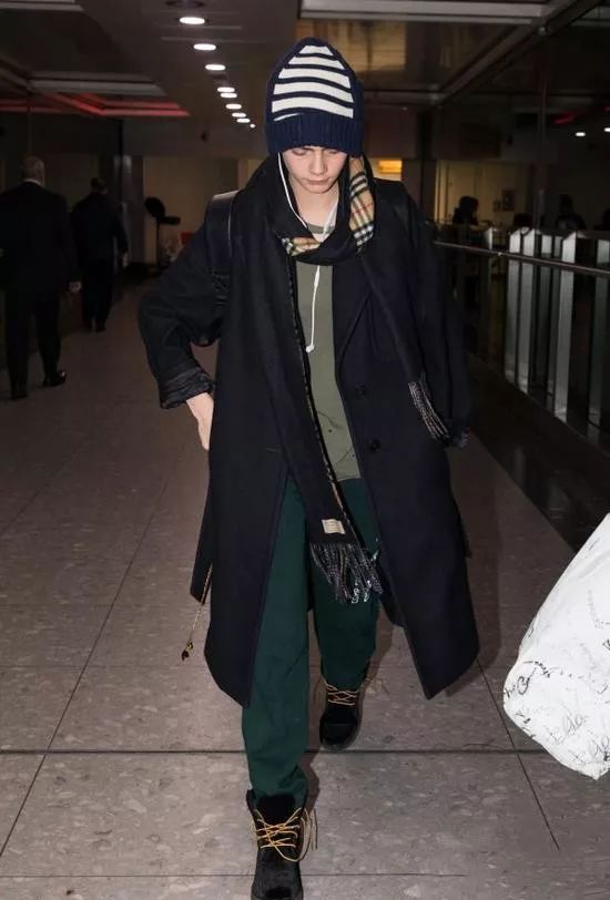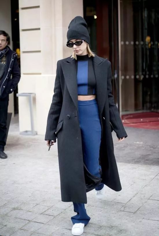 除此之外,毛線帽和西服式的大衣搭配也很有中性風。
