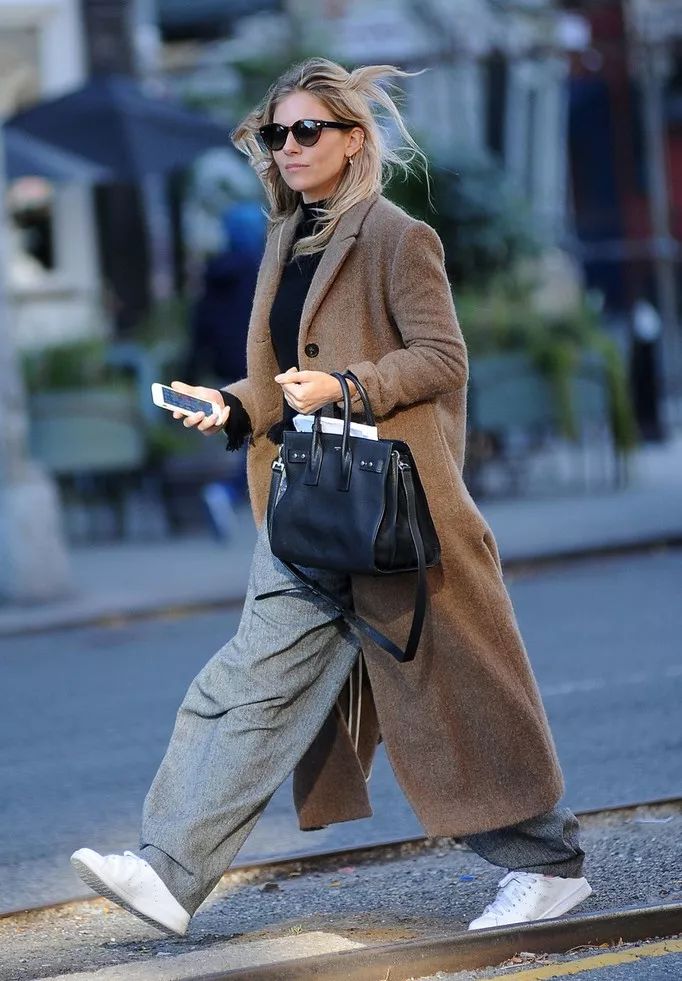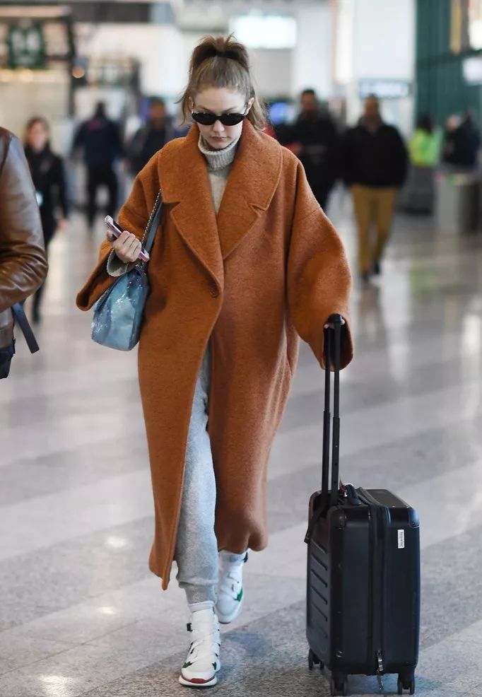 好穿的奶奶褲也得到超模們的青睞,Gigi用來搭配運動鞋和駝色大衣,街拍架式十足。