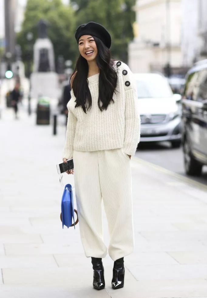 而這種奶奶褲怎麼穿最出彩呢?比如試試同色疊穿!能把奶奶褲的休閒感穿出時裝架式。