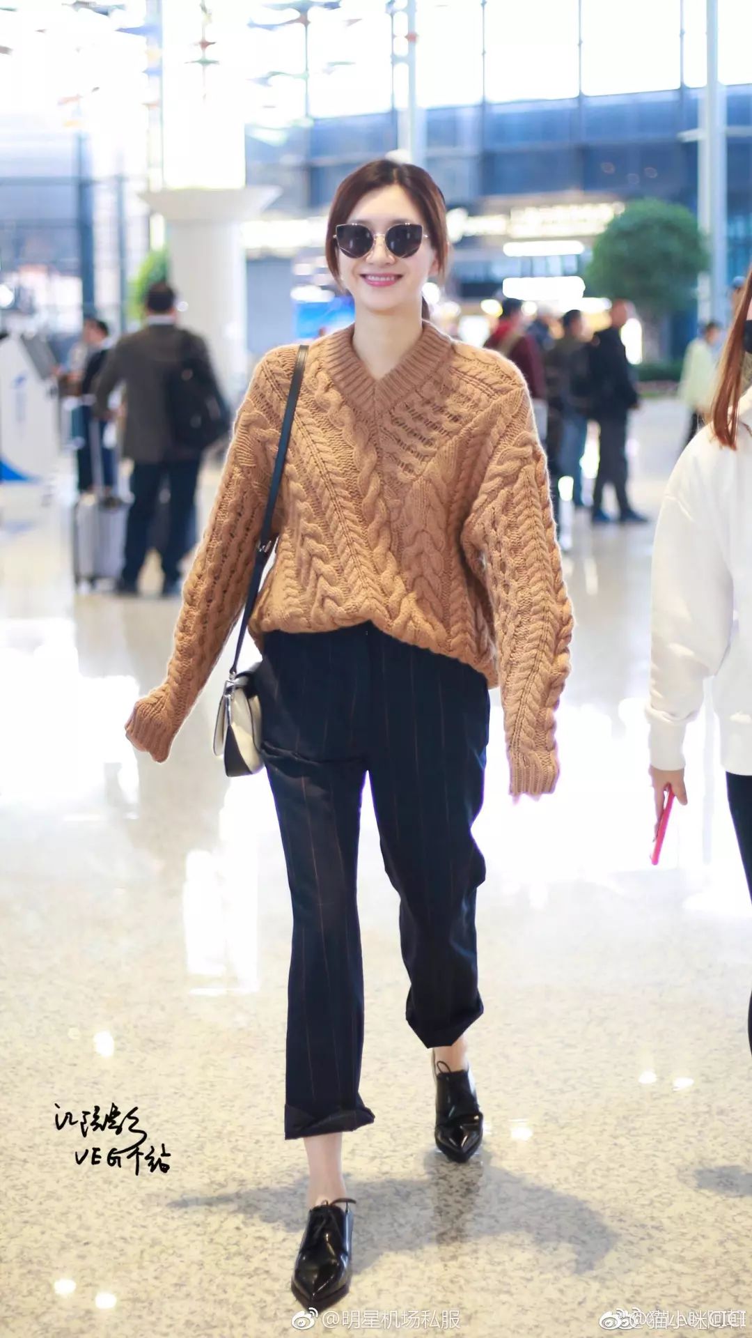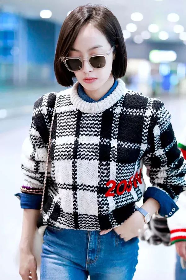 宋茜還在格紋毛衣里多穿了襯衫,是個時髦養生女子了。