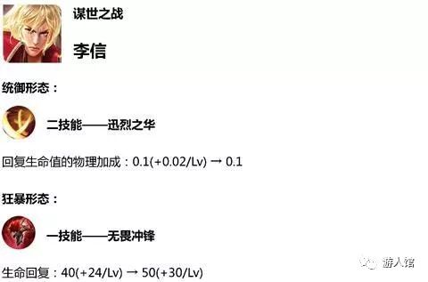 李信的優化一直是朝一個方向優化的,就是削弱統禦形態,加強狂暴形態,主要還是因為李信目前的所有主流打法都是統禦形態,很少有人用狂暴形態的,不知道連續幾波此消彼長會不會讓大家來練習下狂暴形態啊,感覺容錯性比統禦形態還是差太多。