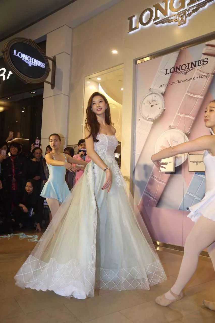 林志玲穿了一條雪白色的婚紗裙,她穿上這條裙就好像童話里的公主一樣。這條禮服裙是抹胸的設計。露出漂亮的鎖骨。