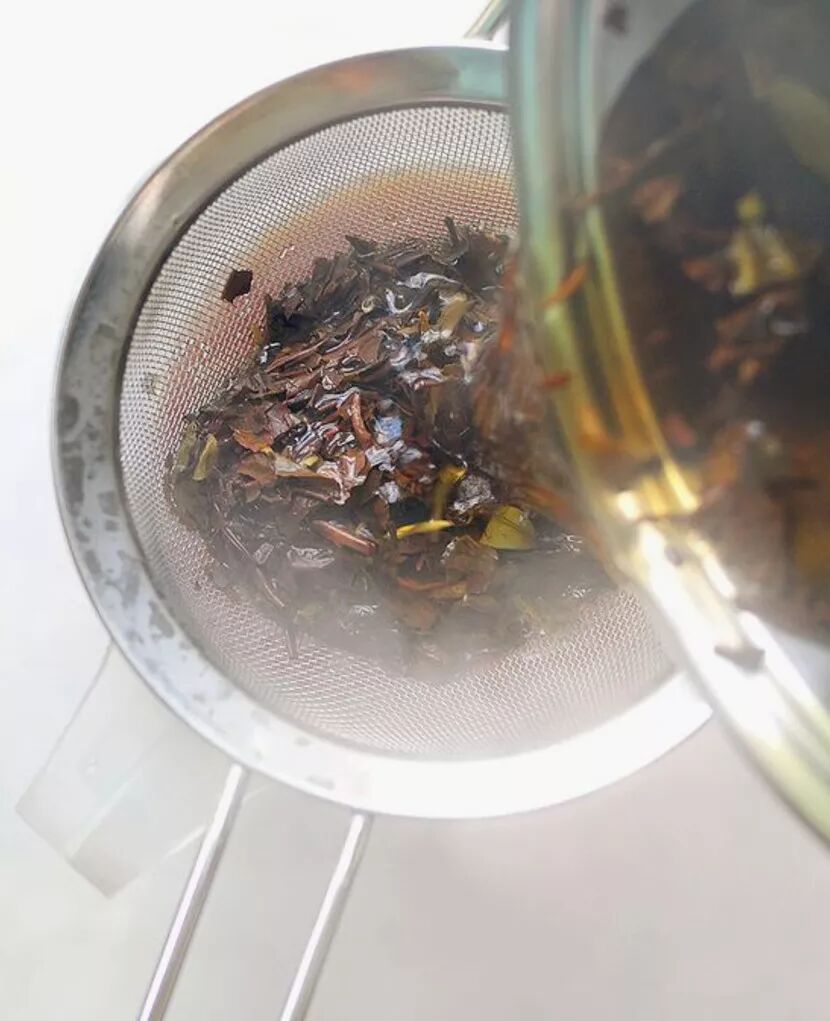 飲用時可用過濾網過濾茶葉,可是當加入些冰糖,飲用湯汁即可。