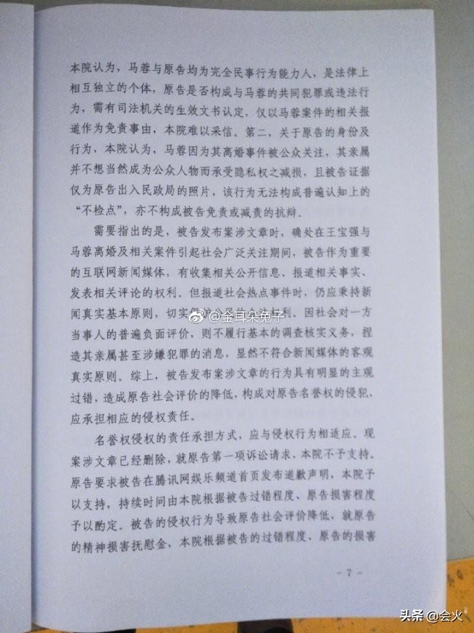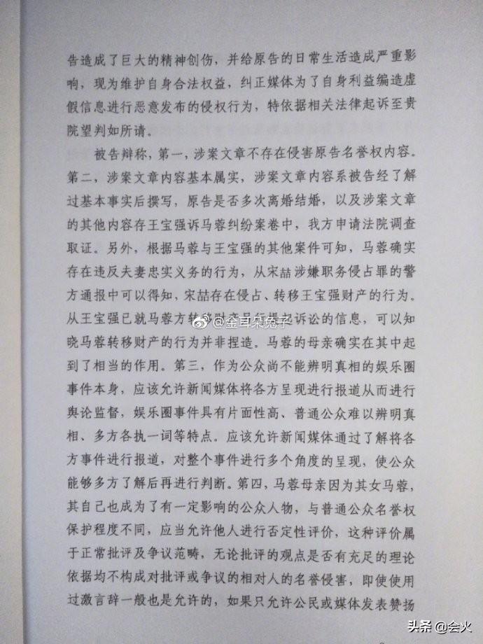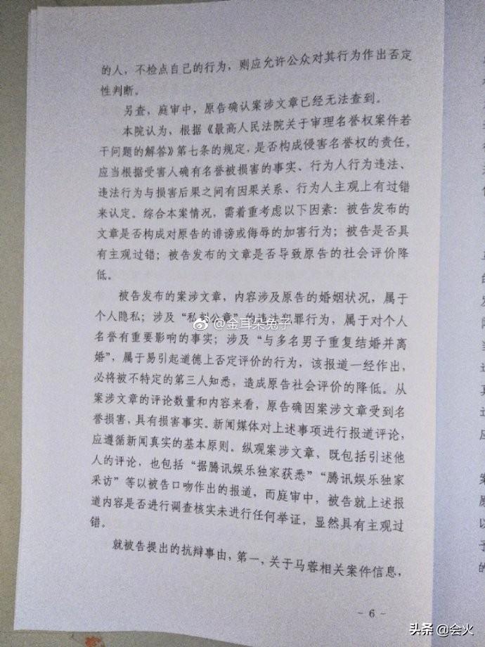 #會火娛樂快報# 【馬蓉維權案勝訴】馬蓉質疑此前某平台發布的《馬蓉母親為轉移財產多次結婚,前夫多達三個以上》一文為不實消息,向法院提起訴訟。剛剛,馬蓉曬出法院判決書,結果表明,被告需要發布道歉聲明,持續時間不少於72小時,並賠償馬蓉3萬元精神損失撫慰金。