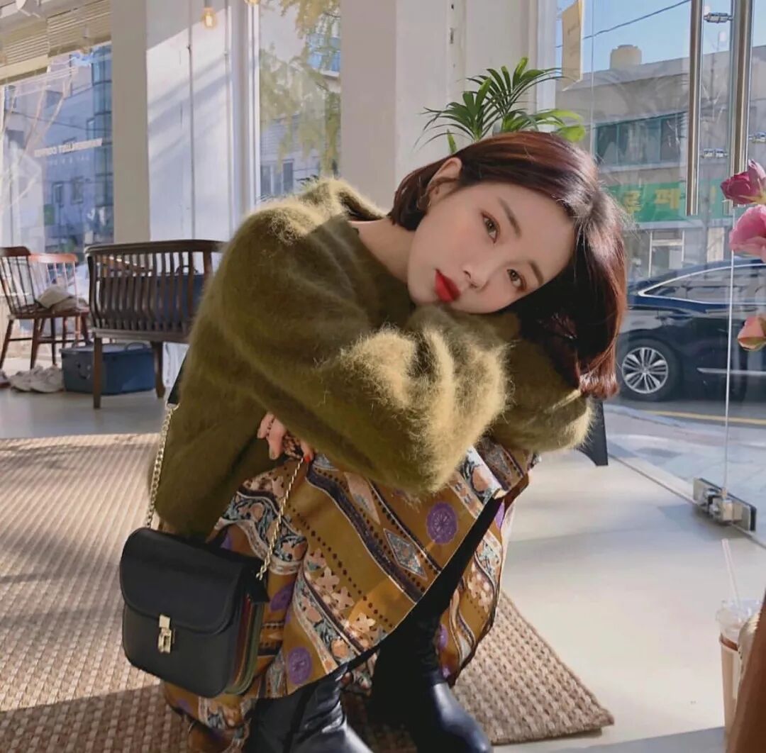 相比針織毛衣,海馬毛的材質毛茸茸的,看起來就很溫暖小女人,搭配民族風的半裙和小皮靴,精致感十足。