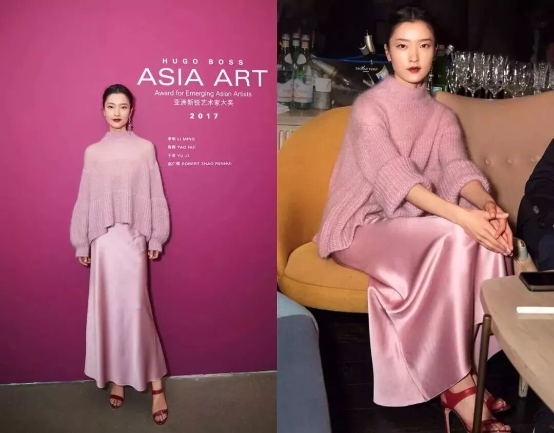 乾枯玫瑰粉飽和度沒有亮粉那麼高,,帶有一絲灰調,剛好中和粉色的「矯情」,提升了高級感!女神高圓圓這身一字肩的乾枯玫瑰粉長裙就顯得更溫柔了。