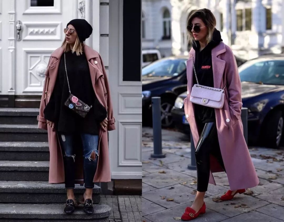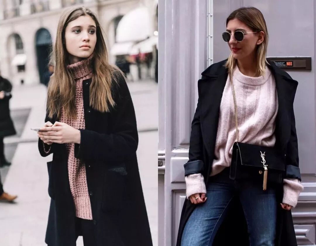 黑色又稱萬能黑,遇上乾枯玫瑰粉,可以說是帥氣與甜美的結合,是時髦的搭配