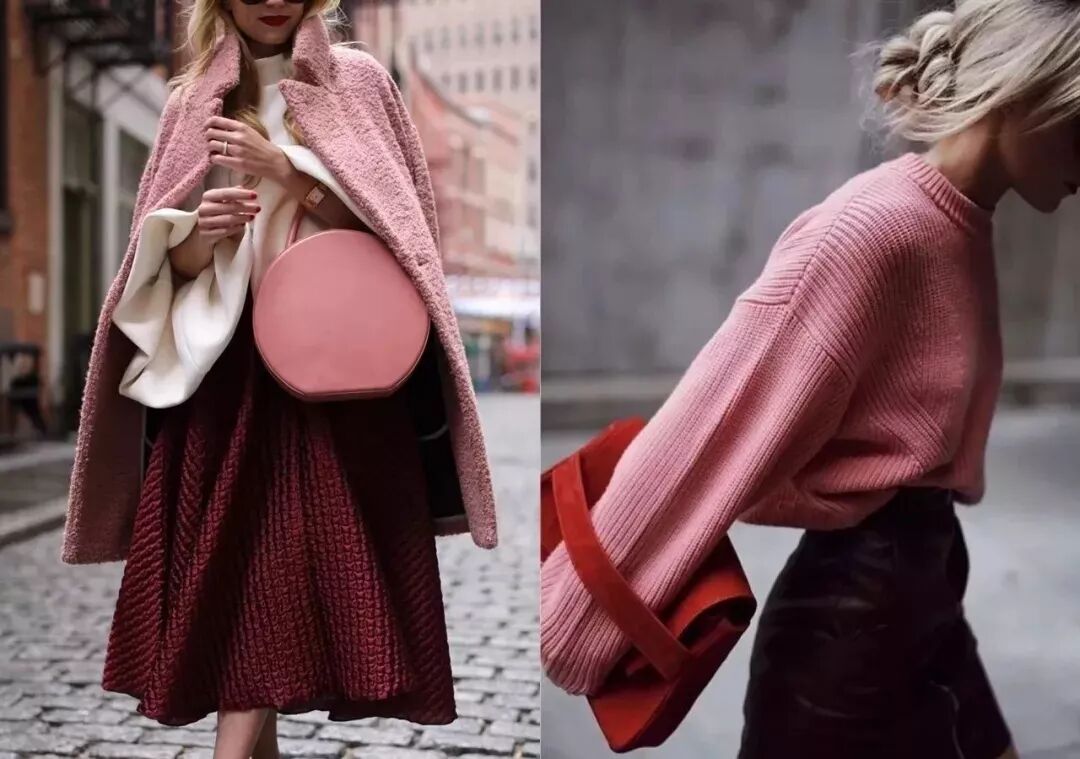 這我就不開心了,記得我之前寫過好多流行色了,有柿子色、高級灰、黑色、聖誕色、珊瑚橙(點擊藍字查看)…但是最喜歡這次的乾枯玫瑰粉,最時髦顯高級,就是超級好看好嗎?