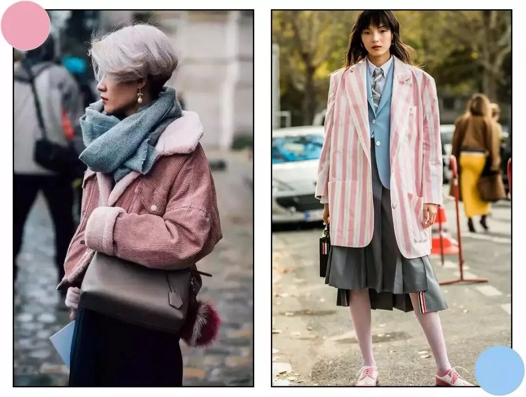 今年很流行霧霾藍,巧合的是與乾枯玫瑰粉是一個夢幻組合。乾枯玫瑰粉的浪漫溫柔中和了霧霾藍的冷清,作為配飾和內搭都可以,不建議外搭霧霾藍,因為它搶乾枯粉風頭啦!
