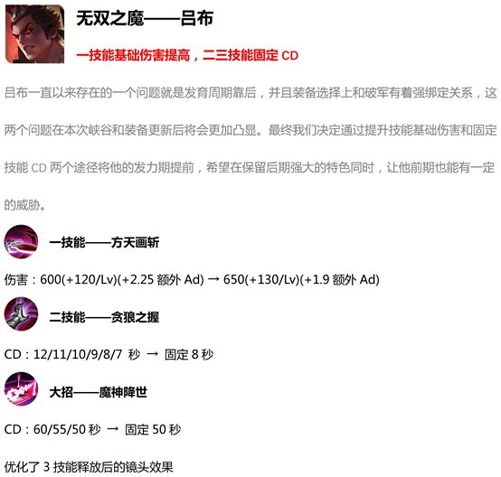 33.優化了呂布技能描述武器附魔狀態相關說明;優化了呂布3技能描述,對落地揮舞方天畫戟進行了更準確地說明。