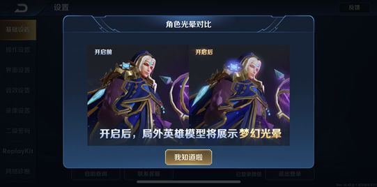 開啟後英雄展示界面將顯示更加立體傳神的角色光暈。