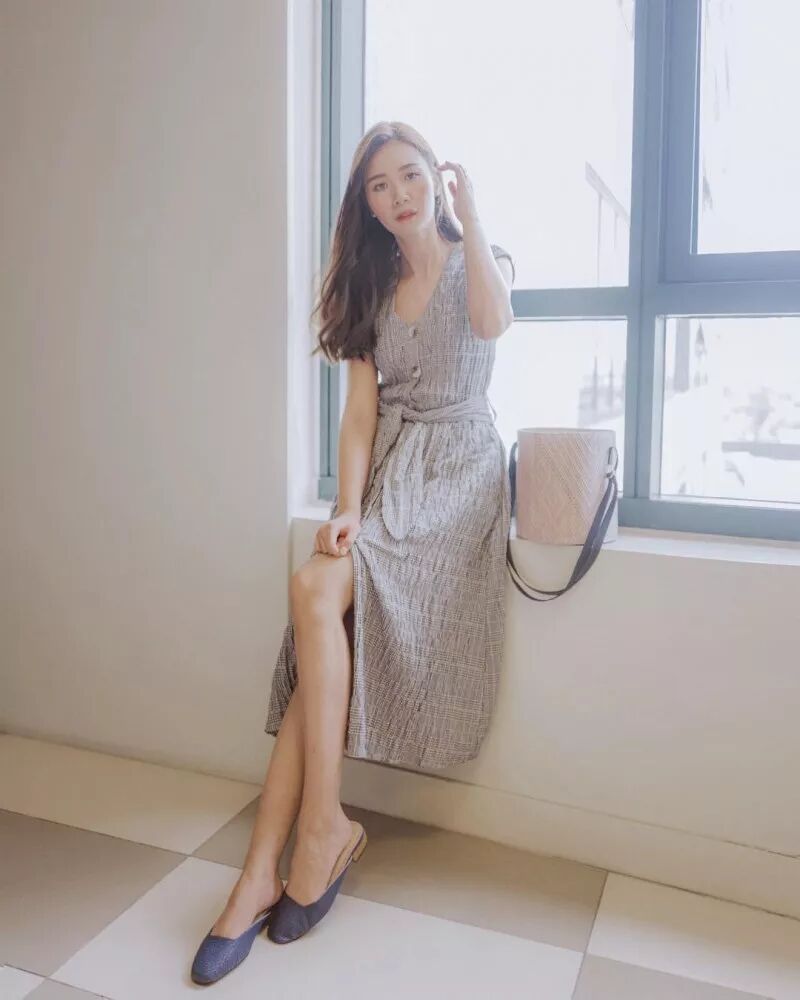 她的裙裝搭配特別有種日系的精致感,很適合二十多歲的姑娘參考。想讓裙裝看起來顯高,首先還是高腰!高腰!高腰!