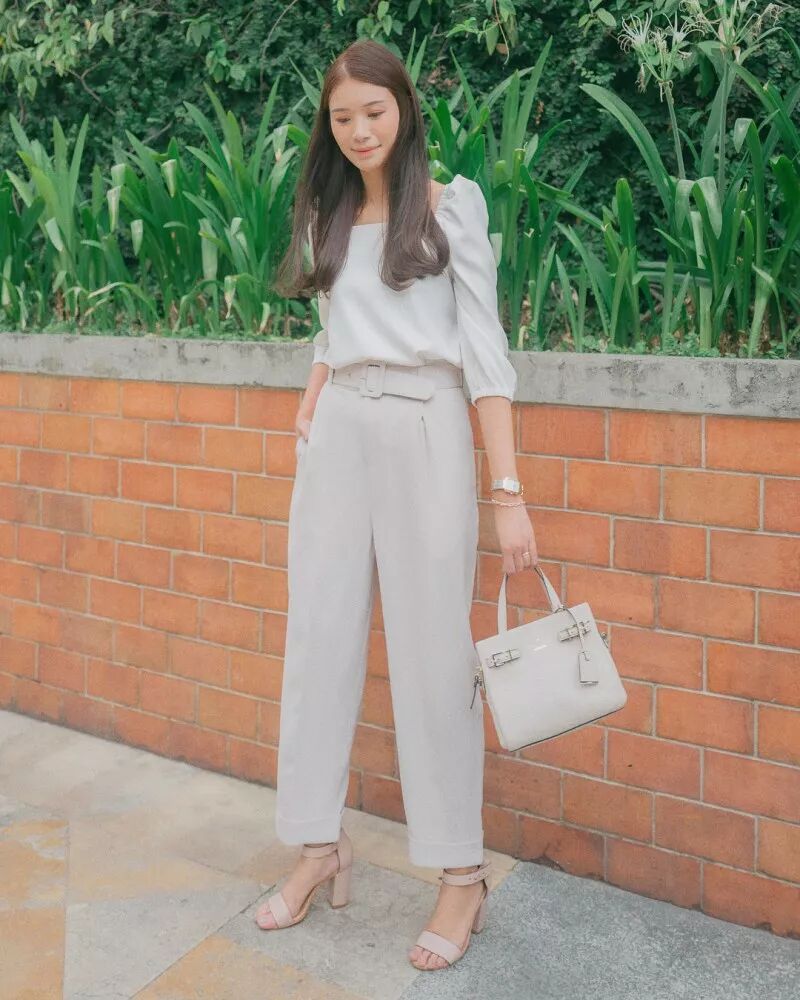 只要是褲裝搭配,tricia就一定會套用這個公式。只要注意褲子選高腰款式,即使搭配平底鞋也能看起來很高挑。