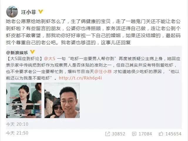 當時,節目播出後,大S這番言論還上了熱搜,許多網友不太認同這話,汪小菲護妻心切,還發微博怒懟網友