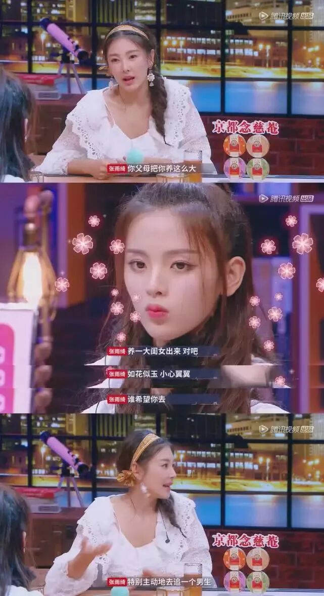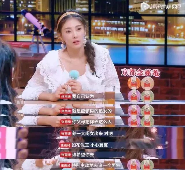 有話直說的張雨綺,贏得了觀眾的讚賞。 除了說「女人讓男人剝蝦太作」之外,她還在節目中表示「男人就該追求女人」,反對女人在兩性關係里太主動