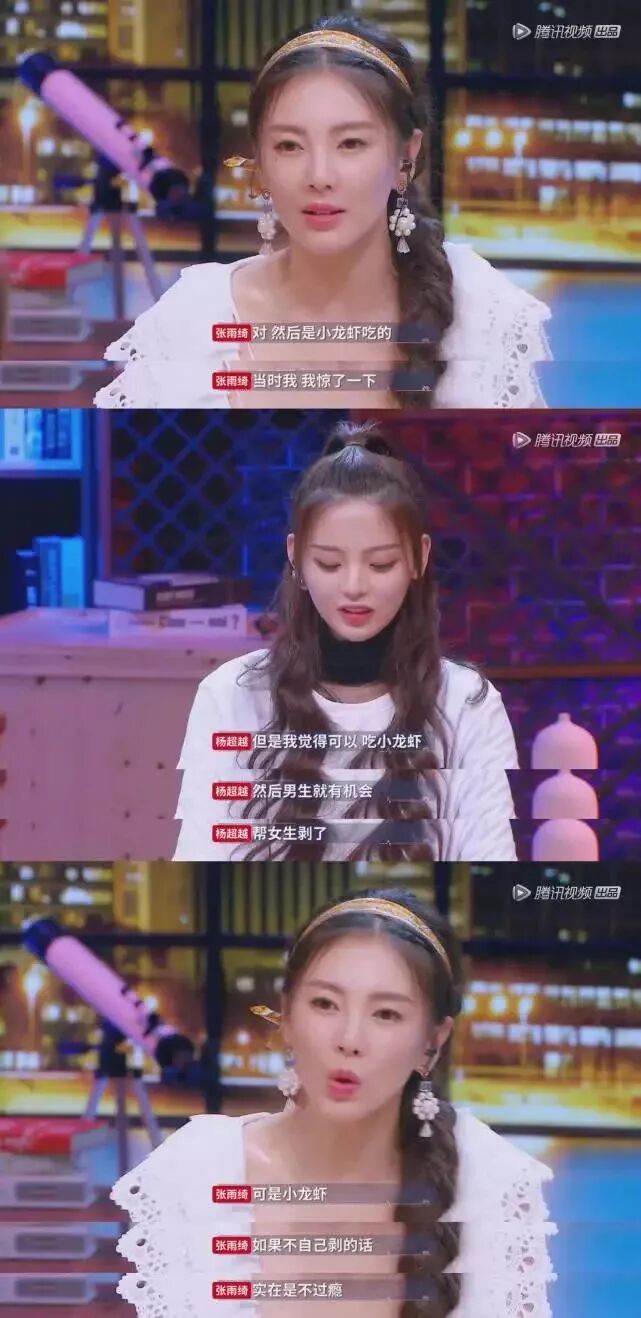 張雨綺馬上反駁說,吃小龍蝦不是自己剝的話,太作了,一點意思都沒有