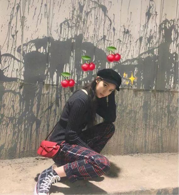 這一身潮搭毫不違和感,反倒給人一種唯美感。