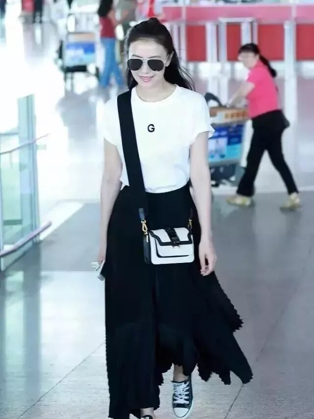 高圓圓這身搭配與她腳上的帆布鞋如出一轍。