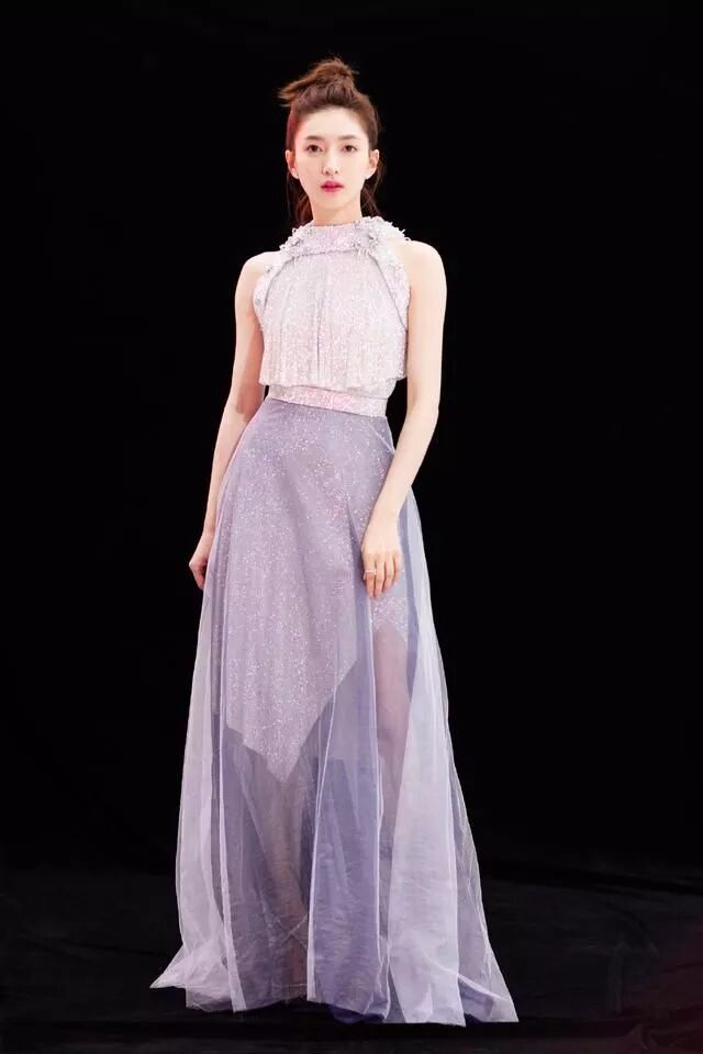 長腿適合長裙,淡紫色的款式,顯得仙氣十足,同時透視效果,吸引大家眼球,看起來性感十足,讓大家格外喜歡。
